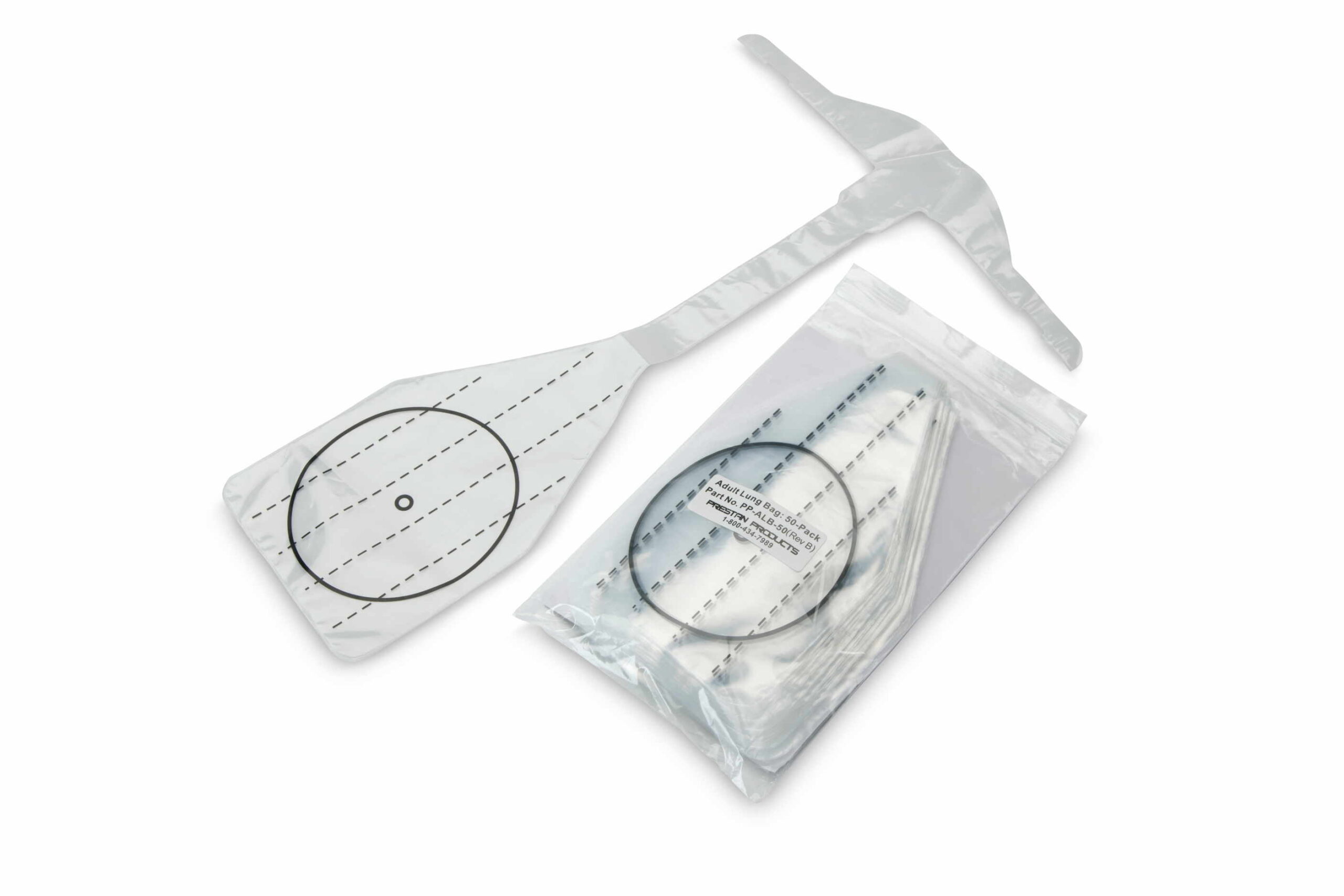 Lote de 50 vías aéreas individuales tipo T que integran protector facial y bolsa pulmón en una sola pieza para los maniquíes profesionales de RCP-AED adulto de Prestan®. Formato económico ideal para centros de formación con alto volumen de alumnos en cursos de reanimación cardiopulmonar y soporte vital.